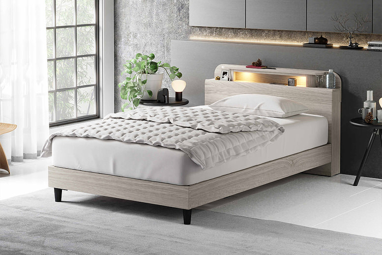 LED照明付きの存在感あるデザインと4種類のボトムから選べるベッドフレーム「アビザ」