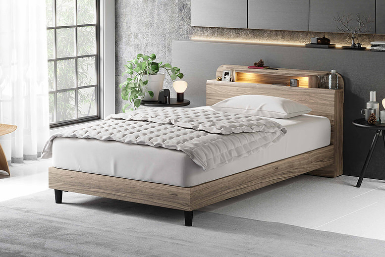 LED照明付きのコンパクトデザインと4種類のボトムから選べるベッドフレーム「リム」